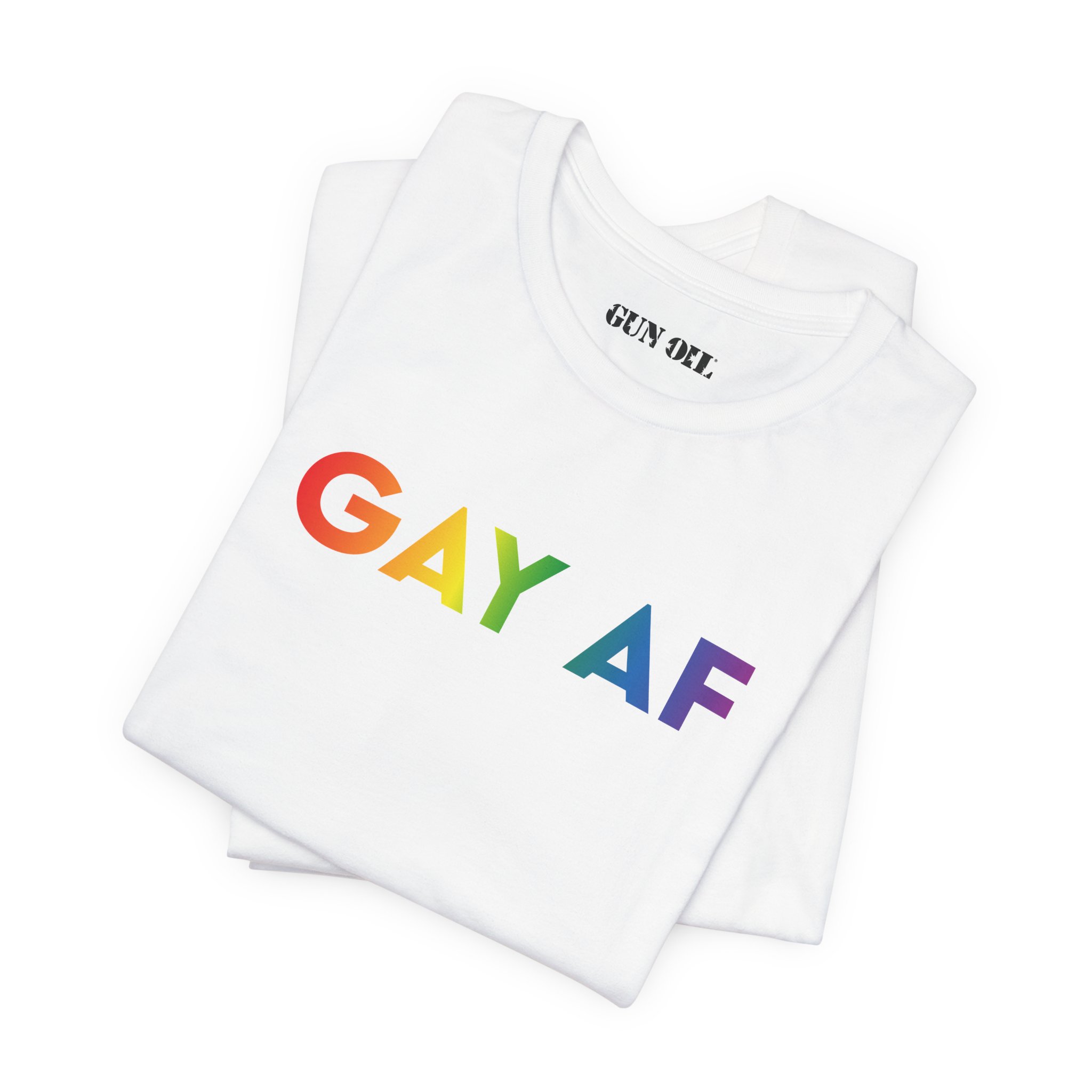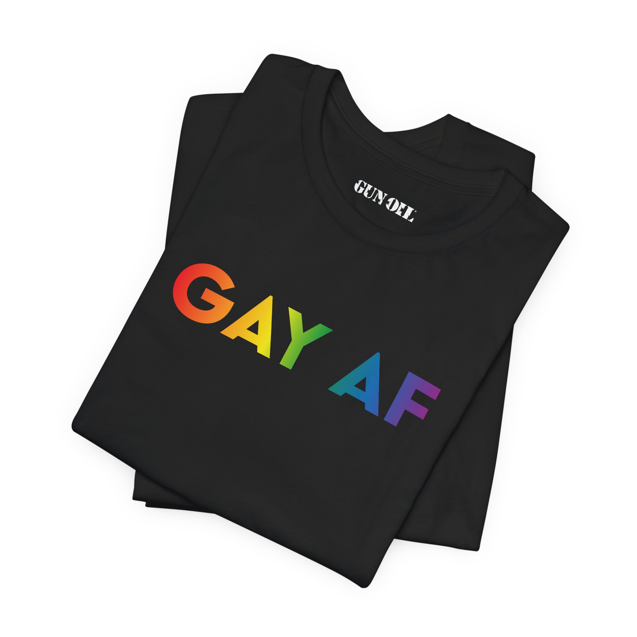 Say it like you mean it—GAY AF. This bold, no-nonsense tee is a statement piece for those who live authentically and without apology. Designed with a vibrant gradient that nods to the rainbow flag, this shirt is perfect for Pride, parties, or just everyday confidence.