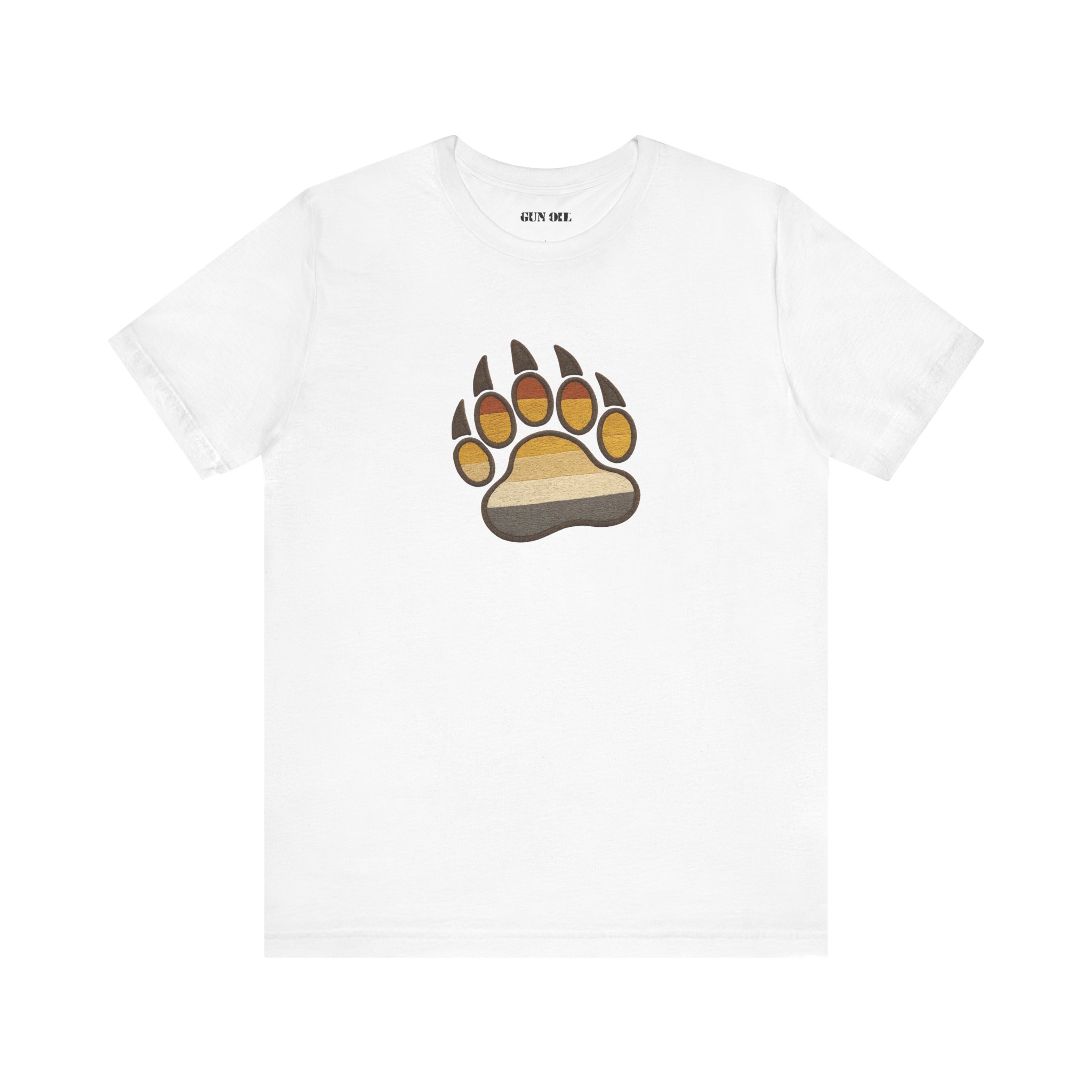Wear your tribe loud and proud with the Paw Power Tee – a bold embroidered-style bear paw dripping in the iconic Bear Pride colors. Designed with a rugged, patch-like texture, this shirt is made for the beasts of the bar, the kings of the den, and every cub in between.
