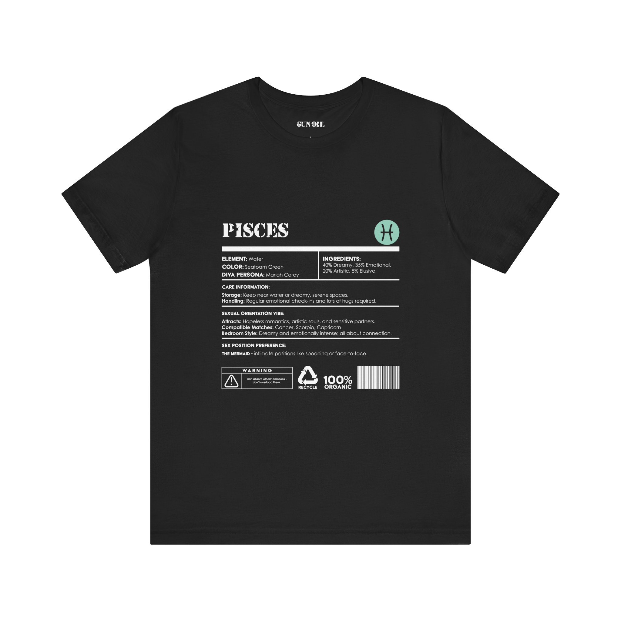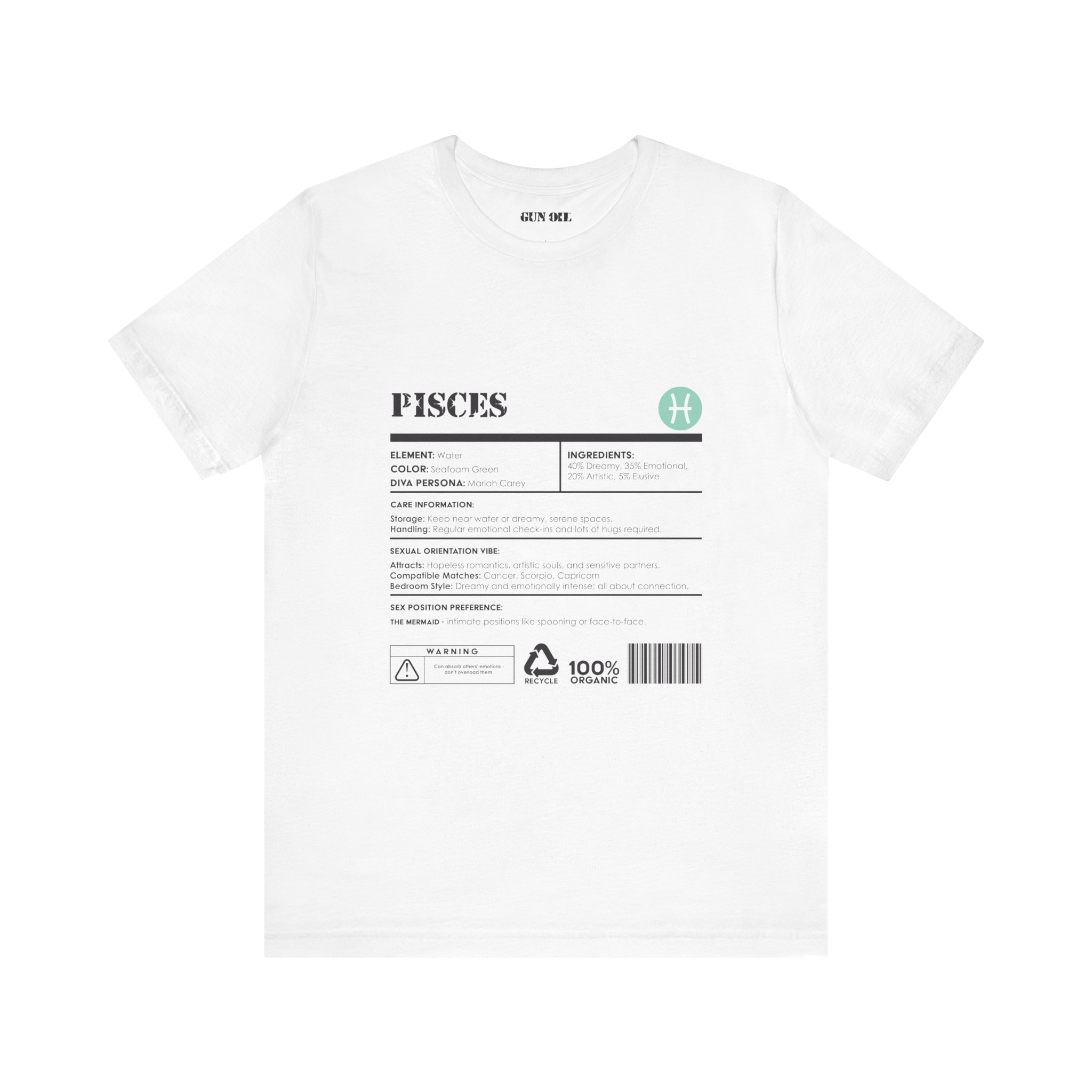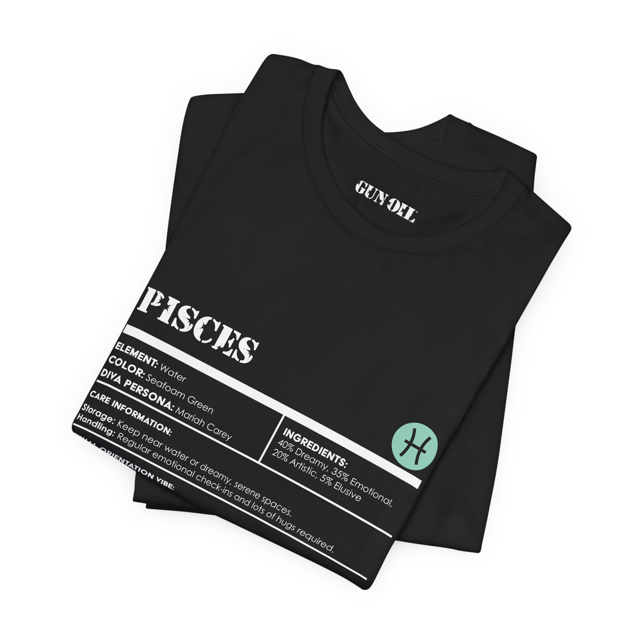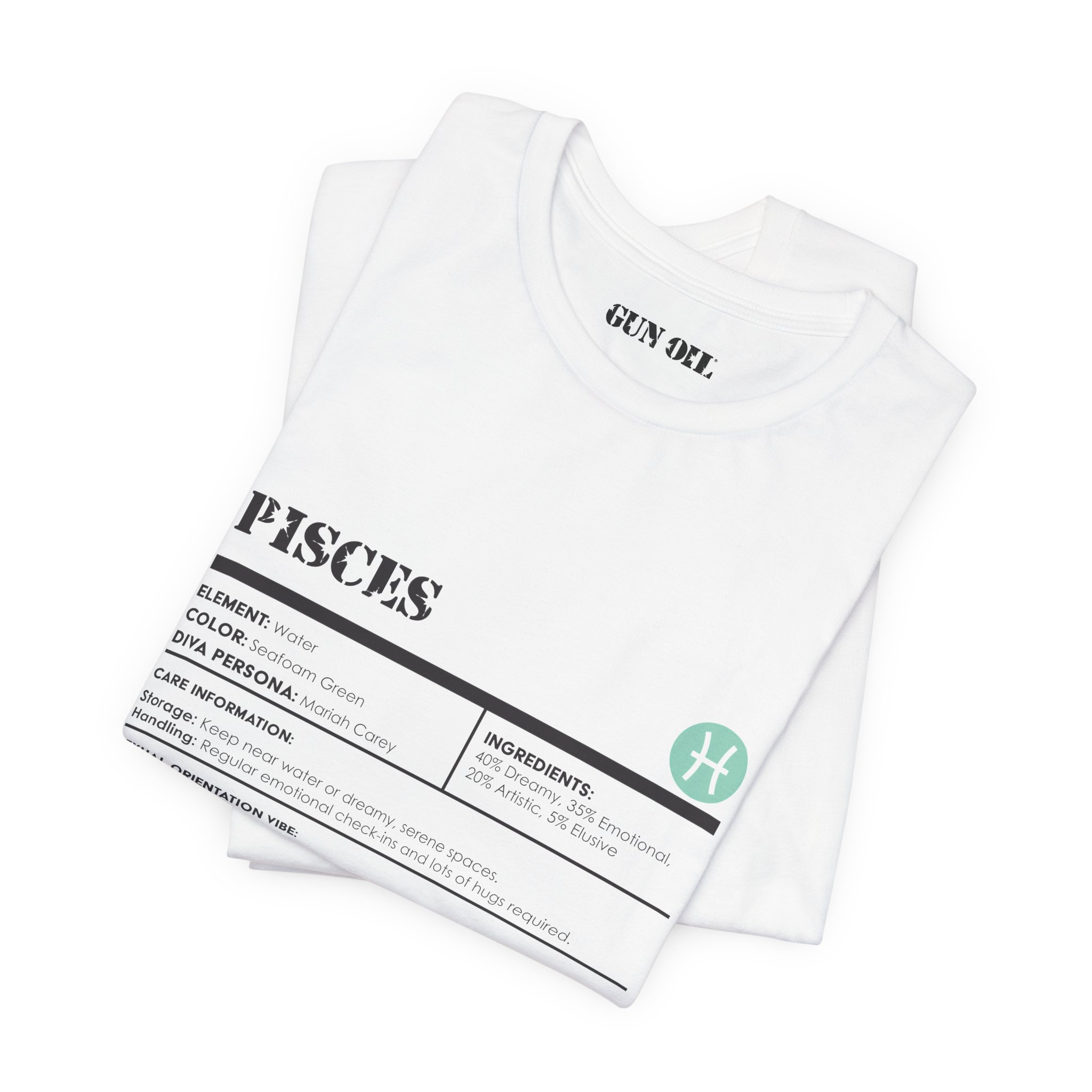 Float through life with a little mystery and a whole lot of feeling. This Pisces-inspired tee is soaked in 40% dreams, 35% deep emotions, and a touch of artistic flair—because reality is overrated. Designed for the romantics, the creatives, and the sensitive souls who feel everything.