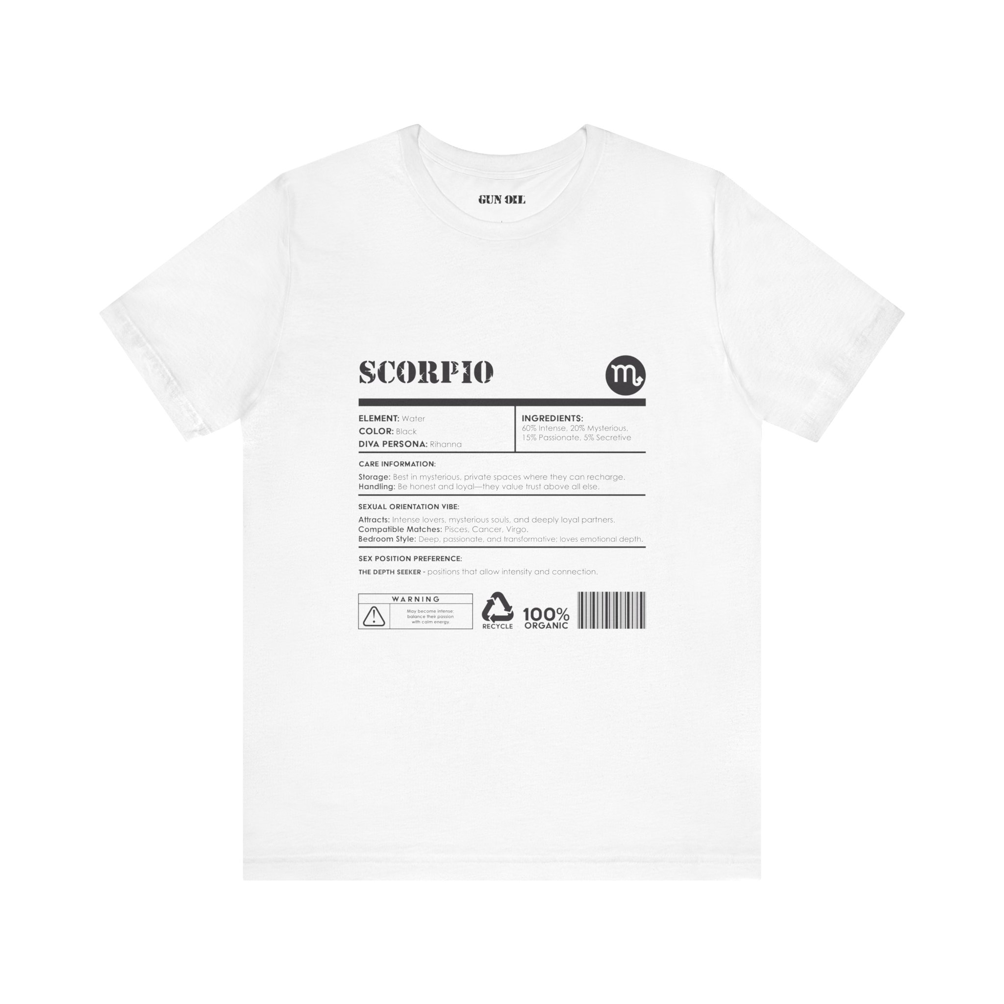 Mysterious. Magnetic. Impossible to ignore. This Scorpio-inspired tee is crafted for those who love deep connections, intense passion, and a little secrecy. With 60% intensity, 20% mystery, and a hint of calculated seduction, this design embodies the energy of the zodiac’s most enigmatic sign.